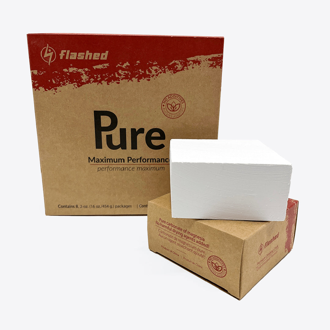 La magnésie Flashed Cube est un incontournable des gyms d’escalade depuis des années, et pour cause : c'est un basique : qualité + efficacité + économie. Elles est composée de craie pure, sans additifs ni agents de séchage. De plus, elle est conditionnée dans un papier 100 % pré-recyclé et recyclable.