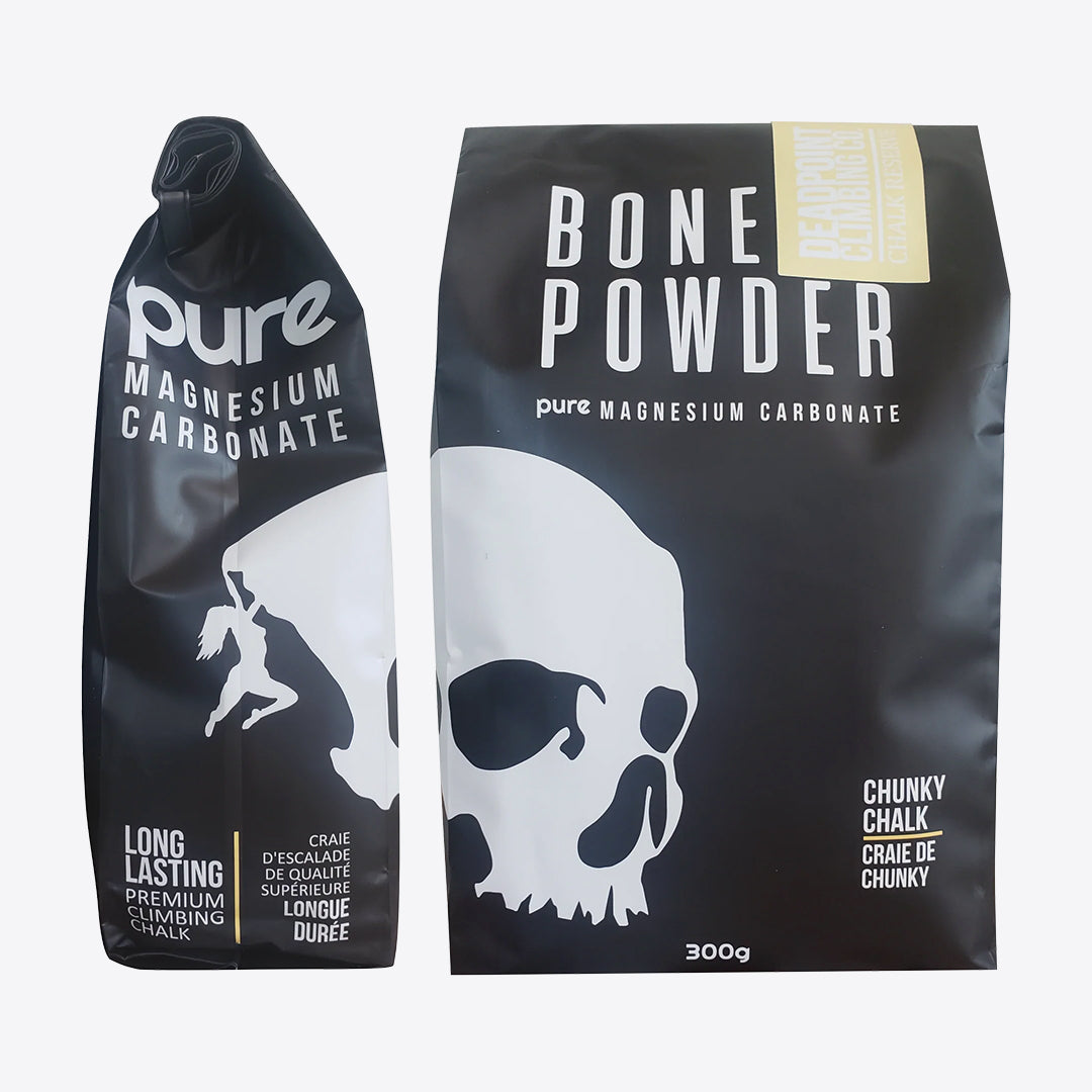 La craie Bone Powder Chunky se distingue par sa texture brute et ses morceaux. Elle est idéale pour les grimpeurs qui recherchent une texture plus authentique sans sacrifier la qualité.