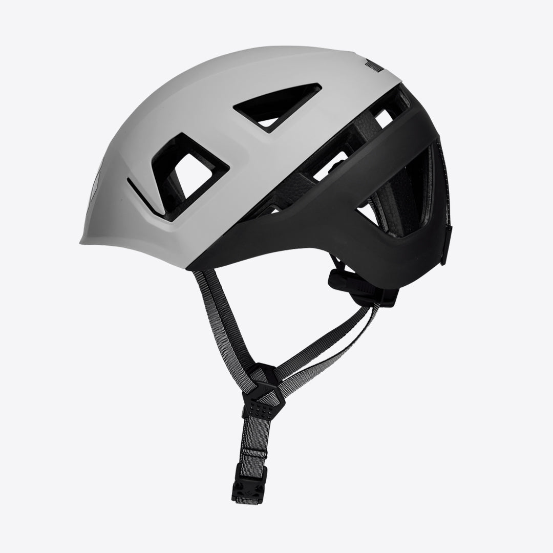 Le Capitan est doté d’une coque à construction ABS et coupe optimisée proposée en deux coloris. Il associe une mousse en EPP et une calotte en mousse EPS qui répond aux exigences UIAA relatives aux protections latérale et arrière.