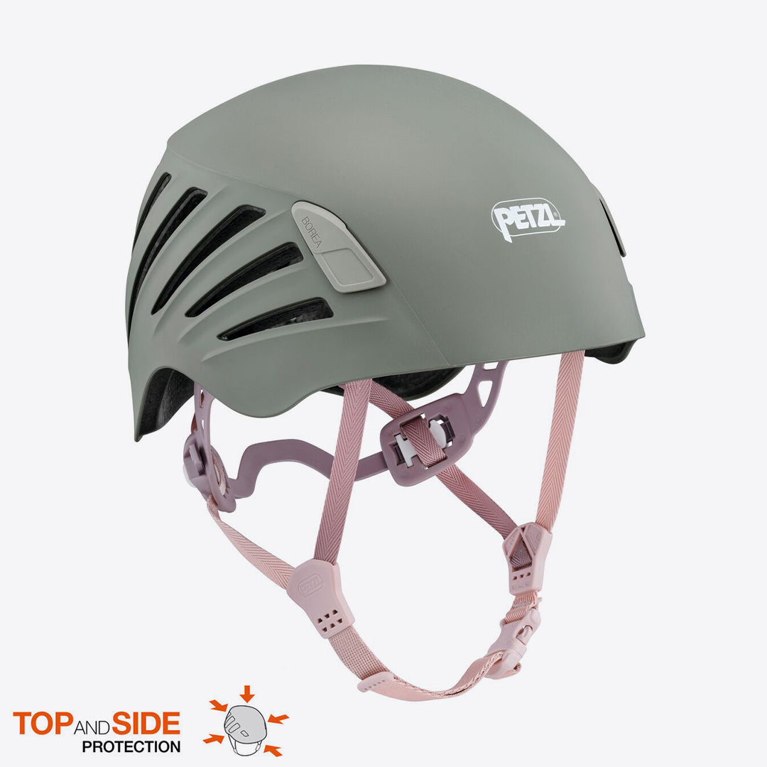 Casque femme robuste et polyvalent pour l'escalade et l’alpinisme. Avec un tour de tête qui s'adapte aux cheveux longs attachés en queue de cheval, le casque BOREA s'adresse aux aventurières !