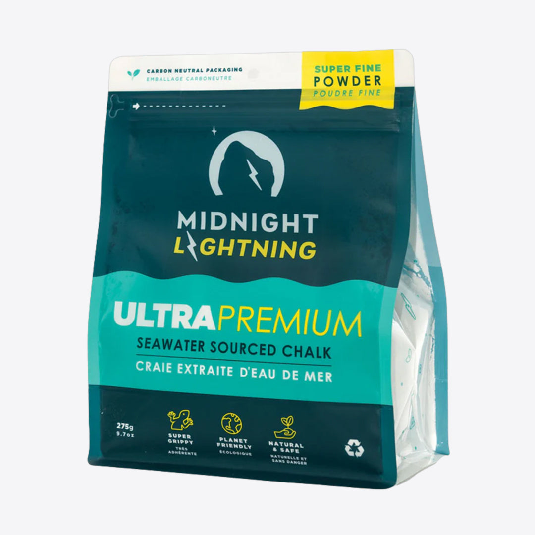 La craie Midnight Lightning FIne est peut-être la craie en poudre la plus écologique de la planète ! Conçue à partir de minéraux d'eau de mer, cette magnésie est fabriquée grâce à des procédés naturels comme l'évaporation solaire. Son emballage est également d'origine végétale et 100 % recyclable.