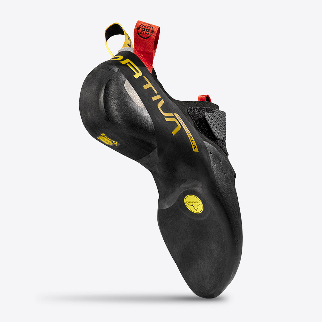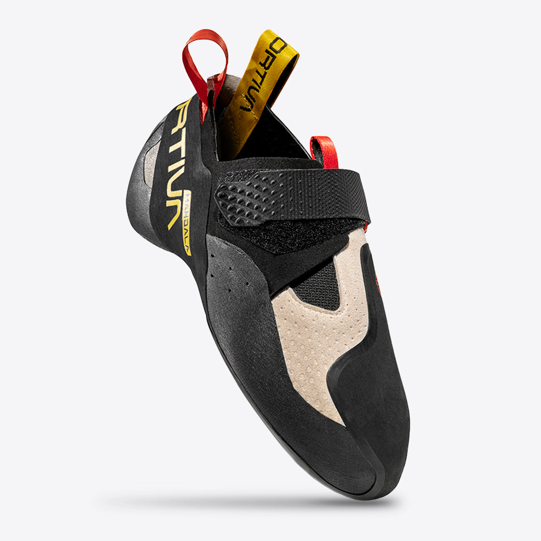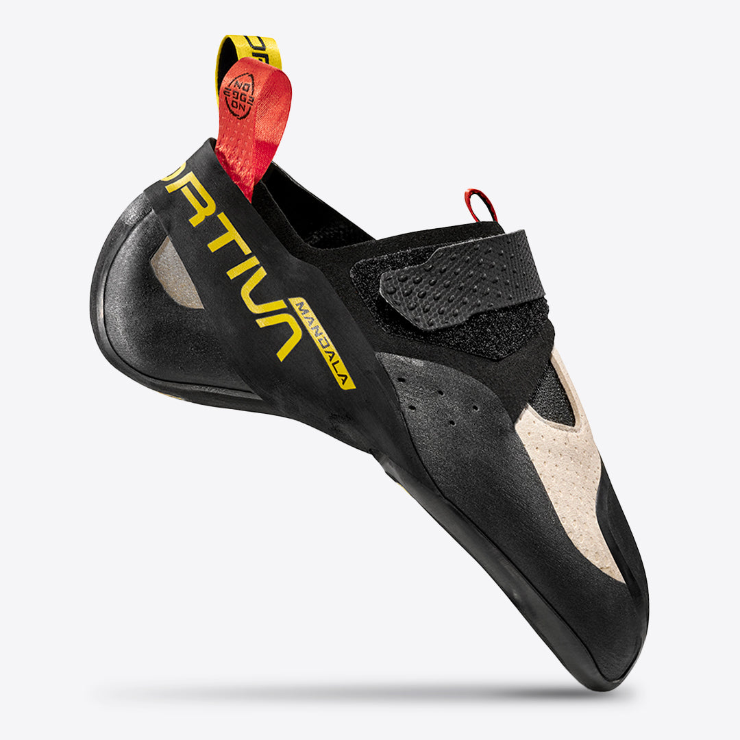 Le soulier Mandala de La Sportiva optimise le mouvement naturel du pied en escalade. Avec un talon perfectionné pour les heels hooks, une sangle renforcée et une pointe en caoutchouc ultra-collant, il offre une adhérence et une confiance exceptionnelles. Conçu pour la réactivité et le confort, il est idéal pour les voies les plus difficiles.